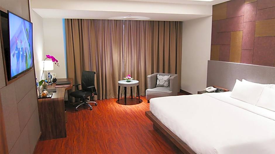 High floor room offers Club Lounge access and its benefits. Ample seating area and work desk are included.